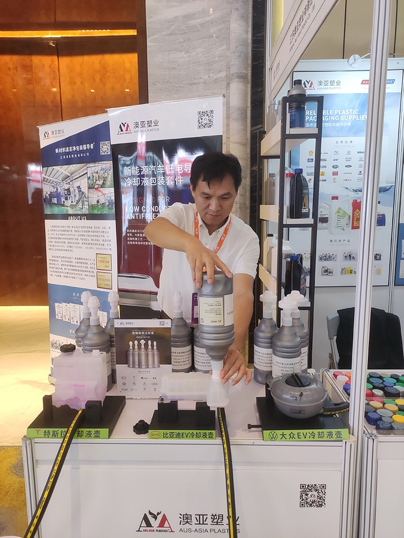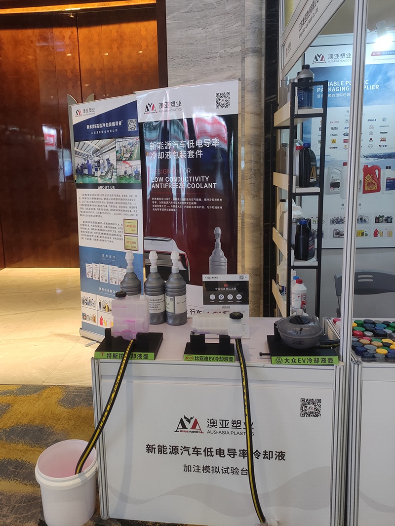 在本屆CPLF論壇,江蘇91香蕉视频在线观看塑業隆重推出了自主研發的新能源汽車(chē)低電導(dǎo)率冷卻液包裝套件係列產(chǎn)品,吸引了眾多前來谘詢和參觀的業界朋友。該(gāi)係列產品是專為新(xīn)能源(yuán)汽車冷卻液包裝與加注而設計開發,為新能(néng)源汽車冷卻液保持低(dī)電(diàn)導率和安全加注提供了創新的解決方案。該係(xì)列產品(pǐn)的推出(chū),標誌著91香蕉视频在线观看塑業通過創新驅動,在新能源汽車化學品包裝領域邁出(chū)了嶄新的一步(bù),為企(qǐ)業發展開辟了新的賽道。